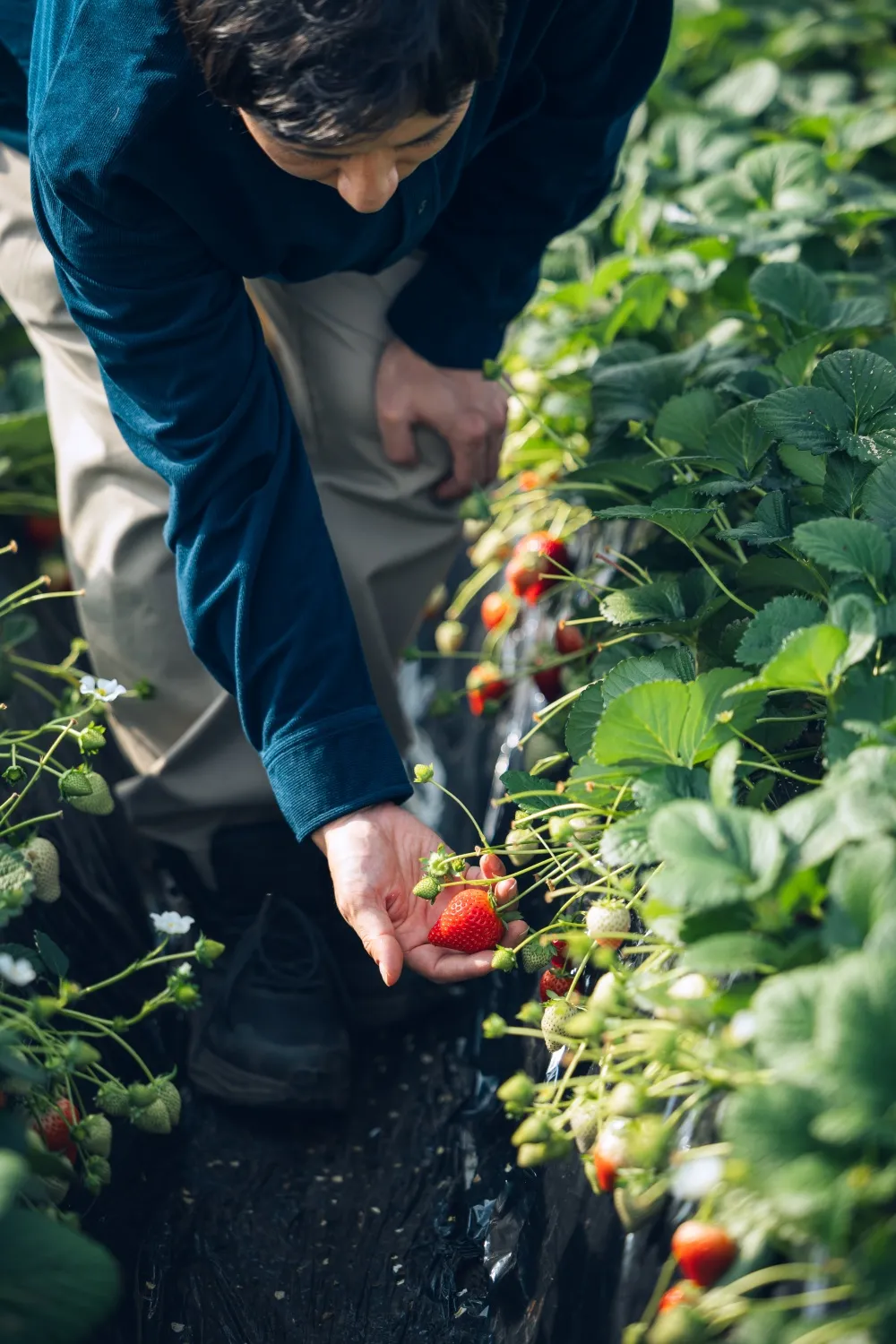 収穫量よりも味にこだわり、徹底した温度管理と肥培管理を行い、限界まで完熟させた朝どれ苺です。